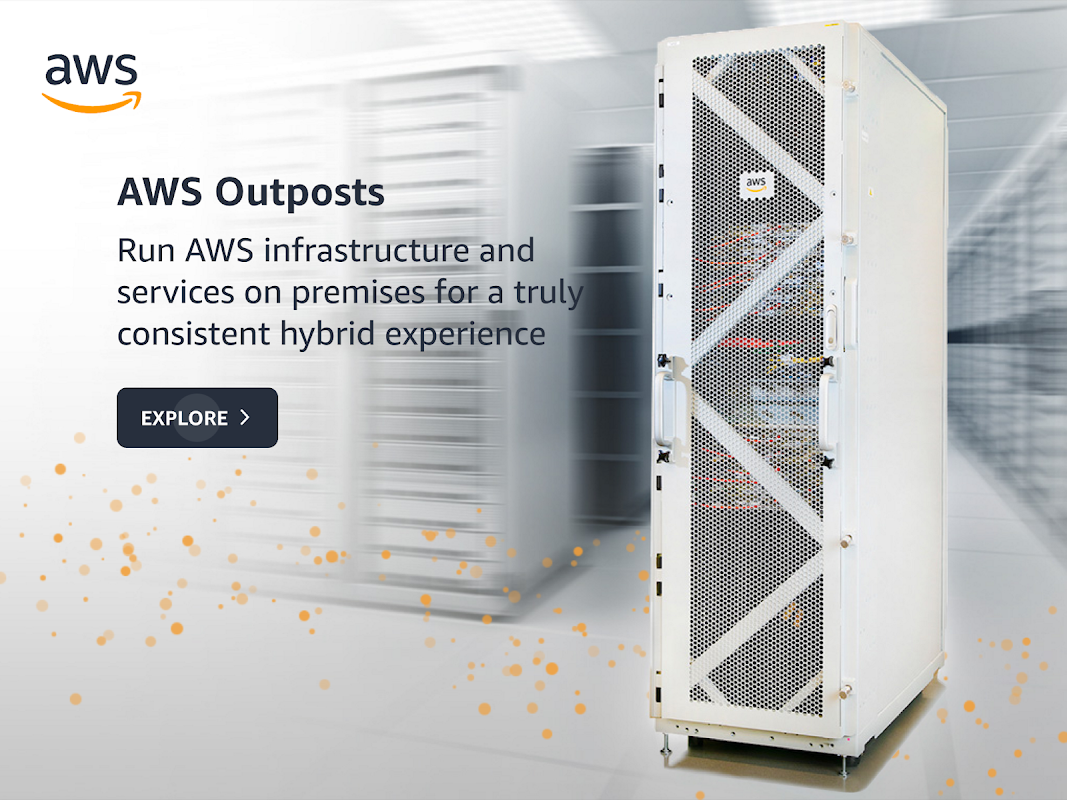 AWS Outposts memberikan pengalaman hibrid yang benar-benar konsisten dengan membawa infrastruktur, perkhidmatan, API, dan alat AWS ke mana sahaja pelanggan memerlukannya. Aplikasi AWS Outposts menyediakan demo maya mengenai spesifikasi dan ciri perkakasan AWS Outposts. Aplikasi ini menyediakan lawatan berpandu dan panduan sendiri dari komponen Outposts, seperti hos, rangkaian, kuasa, dan keselamatan, dan fungsi AR untuk pengalaman yang mengasyikkan.