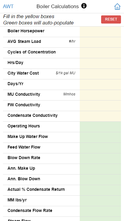 Persatuan Water Technologies (AWT) pengiraan app membolehkan Perawat air untuk melakukan pengiraan rawatan air asas pada peranti mudah alih mereka apabila mereka berada di dalam lapangan. Aplikasi ini membolehkan anda untuk menentukan keadaan sistem dandang anda, menjalankan sebuah menara penyejukan kajian, kira kapasiti dealkalizer, dan menentukan penjimatan tenaga.