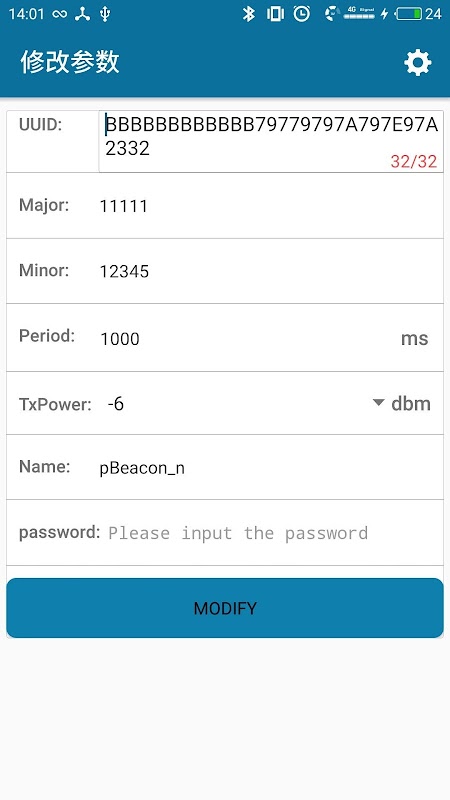 Untuk mengubah suai UUID itu, Major, Minor, Txpower dll