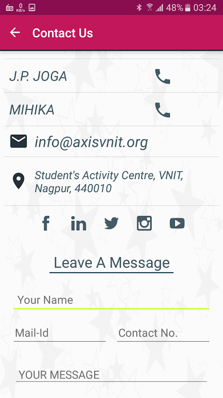 Ini adalah android app rasmi AXIS perayaan teknikal tahunan, VNIT NAGPUR, festival teknikal Terbesar di Central India.