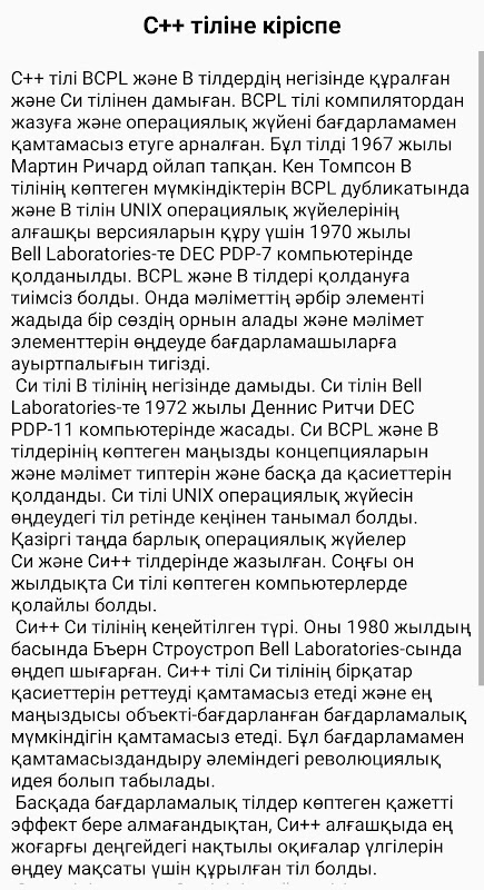 C ++ kurikulum konsep asas, jenis data, tatasusunan, petunjuk, fungsi, gelung, ungkapan bersyarat, kelas dan objek, harta pusaka dan polymorphism, yang termasuk fail, template, ciri-ciri, dan termasuk lebih daripada 80 pelajaran dibahagikan kepada 8 peringkat. Cari tahap baru, kuiz, skor dan bersaing dengan rakan sekerja di seluruh dunia.