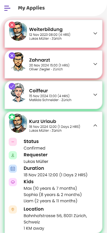 Dengan aplikasi pengasuh, anda boleh mengucapkan selamat tinggal kepada pencarian yang memenatkan untuk pengasuh yang boleh dipercayai. Apl mudah untuk digunakan kami memudahkan proses dan membolehkan anda mencari penjaga yang sempurna untuk keperluan anda dengan mudah. Sama ada anda perlu menghadiri temu janji saat akhir, membuat janji temu khas atau hanya memerlukan bantuan, komuniti penjaga kami sedia membantu anda.