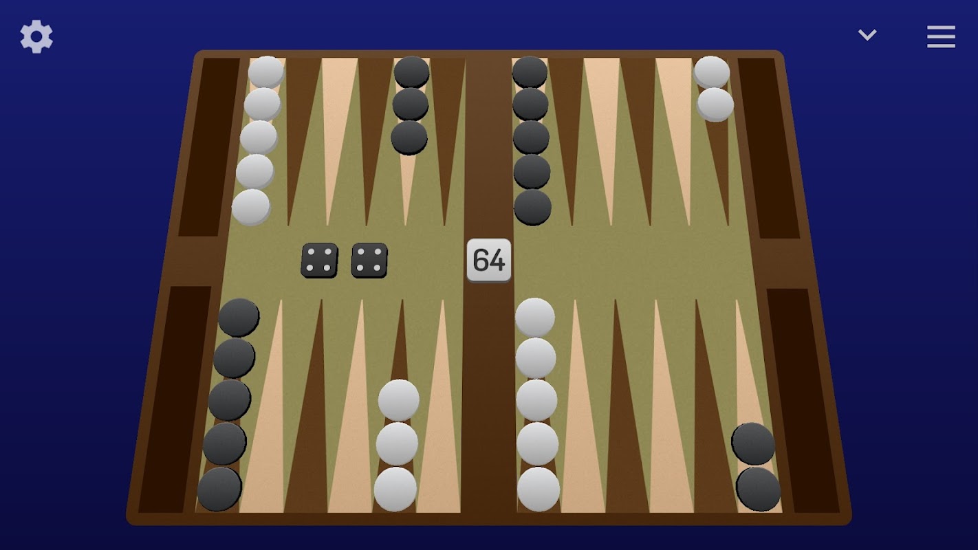 Papan backgammon muncul di tengah skrin sebaik sahaja aplikasi dilancarkan (dalam mod landskap), dan empat butang kekal kelihatan di bahagian atas skrin. Pilihan pertama di sebelah kiri, Tetapan, membolehkan anda memilih daripada pelbagai papan, dadu dan batu di samping menetapkan atau mengaktifkan beberapa ciri permainan penting seperti kubus Penggandaan, peraturan Jacoby dan Crawford serta tempoh perlawanan. Kemudian, butang kedua membolehkan anda menukar warna latar belakang. Permainan ini boleh dikawal dengan beberapa arahan mudah dengan menekan butang Menu di sebelah lain: Mula, Berhenti, Buat asal dan Alih. PIP dikira untuk kedua-dua pemain dan skor permainan boleh didayakan dan dilumpuhkan menggunakan butang Anak Panah.