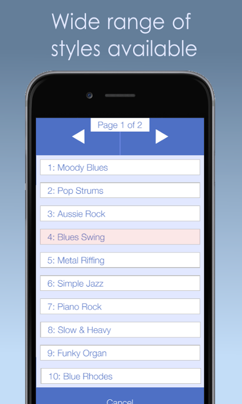 Membina trek jem anda sendiri dalam setiap gaya. Blues, Rock, Metal dan Jazz!