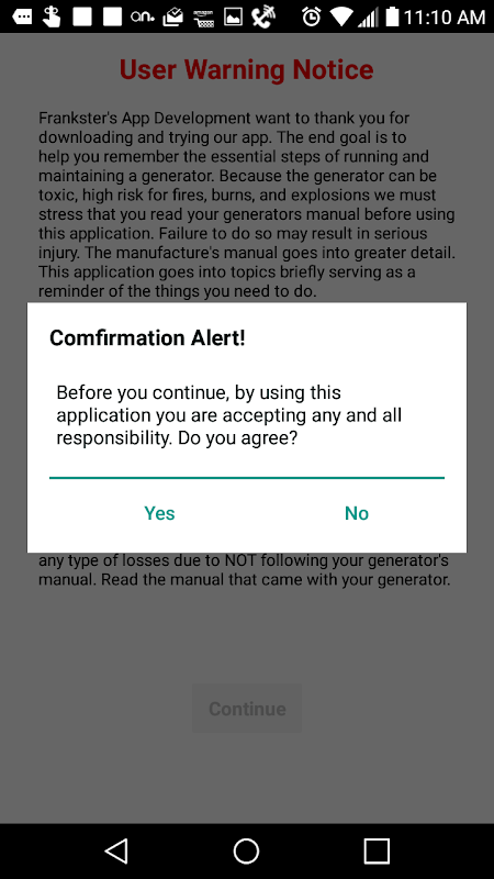 If you are new to owning a generator, please install this app. Send me feedback about your experience, so if I need to work on something I can make the corrections. Please read before you agree when the time comes. This app works if you consent to its terms.