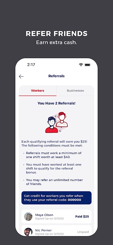 >> Ingin merujuk rakan? Hanya log masuk ke aplikasi Bacon untuk pautan rujukan yang unik. Selepas rakan anda bekerja pada syif pertama mereka, anda akan menerima bonus $25 dolar!