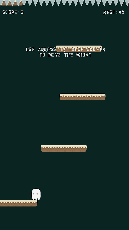He needs help getting down and only you can help him! Baka ghost is an addictive and fun, fall down game. Use arrow keys or your touch screen to move the ghost and fall down. Avoid getting spiked or missing a step. As your score goes up the game gets faster! Baka ghost is an enjoyable, good time killer game.