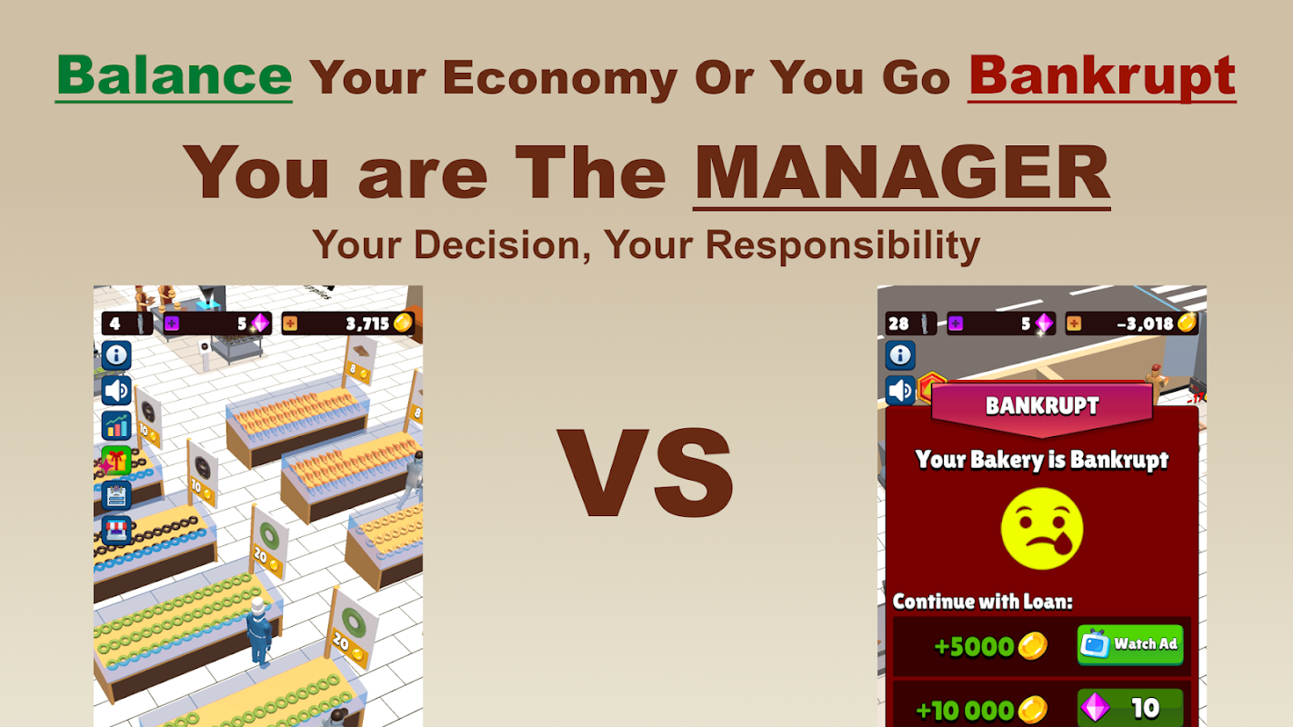 + Jalankan Empayar Perniagaan yang Berkembang: Kembangkan daripada kedai roti sudut yang selesa kepada kedai rangkaian yang sibuk. Reka bentuk pameran yang menarik perhatian, tetapkan harga dan tonton syiling masuk—tetapi kekalkan kos!