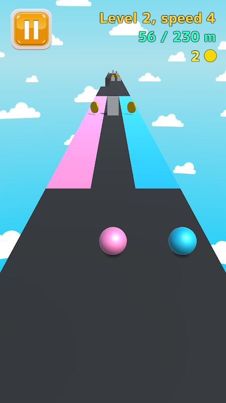 Permainan berlari di mana dua bola warna berlari bersama-sama!