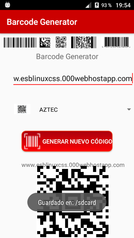 Al generar el código de barras se guardará automáticamente en la memoria del dispositivo para que facilmente puedas copiarlo a una PC, compartirlo, etc.
