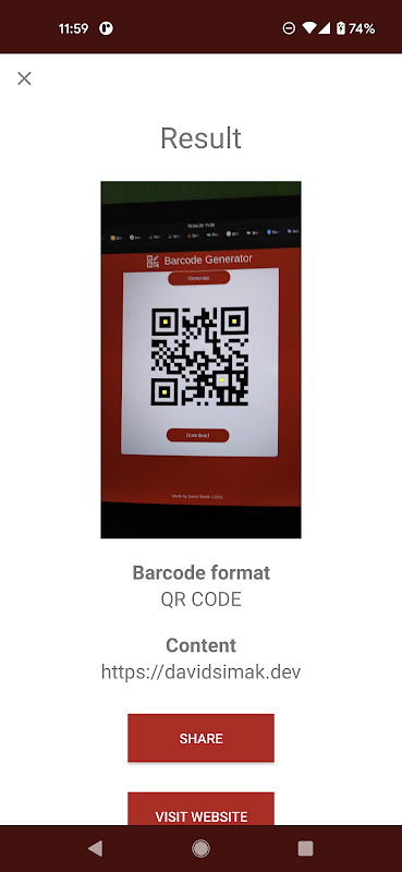 Simple barcode scanner for scanning QR codes and EAN codes