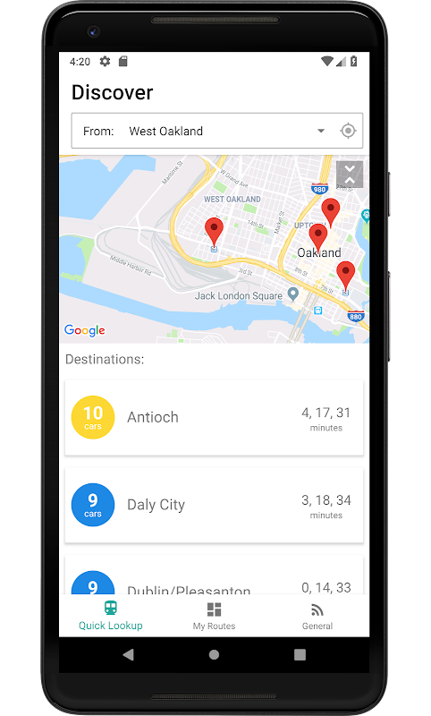 Bart yang lebih baik boleh digunakan untuk mengesan jadual masa nyata untuk sistem BART (Bay Area Rapid Transit). Anda boleh menggunakan "Lookup Pantas" untuk mendapatkan maklumat asas, menambah laluan kegemaran anda untuk "Laluan saya", dan memeriksa semua masa berlepas masa nyata, melambatkan status, kalkulator makanan di sana. Anda boleh mencari semua-laluan peta BART dari "General" dan hubungi kami jika ada masalah di sana juga.