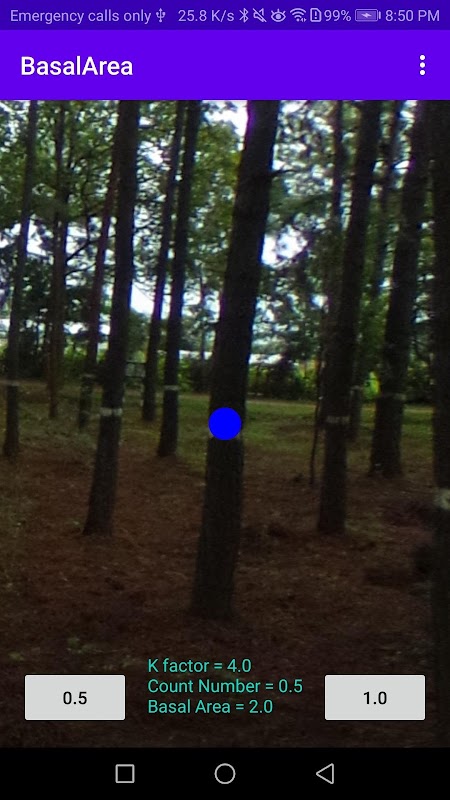 Aplikasi Basal Area dirancang untuk pengiraan luas basal sederhana dengan menggunakan kaedah Bitterlich seperti seperti tinjauan Relascope.