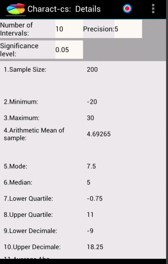 The application has function for smooth distributions, this includes assets for visualization adjusted( smooth) distributions related to the sample, not excluded from the Pearson's and Kolmogorov-Smirnovr's criteria.