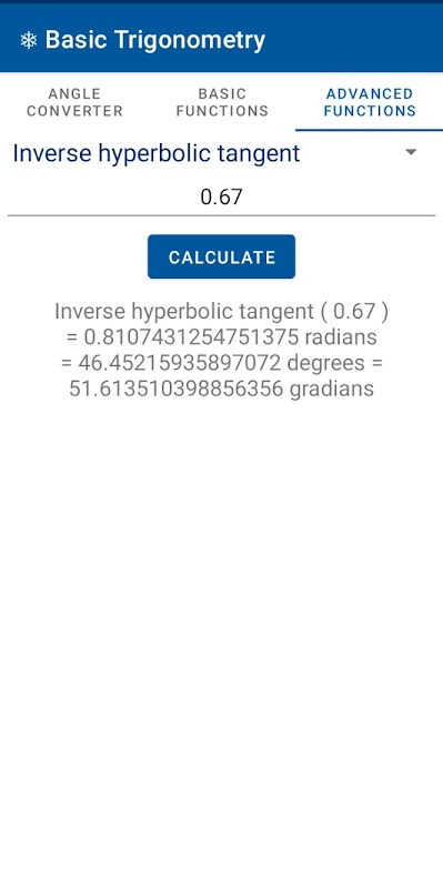 Kalkulator fungsi penukar sudut dan trigonometri