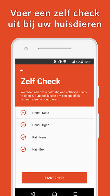 Aplikasi ini menunjukkan data perubatan haiwan kesayangan anda dan fungsi menyemak diri.