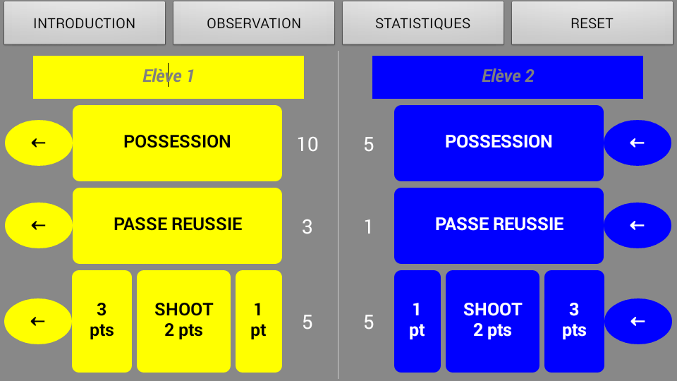 Saya menggunakan aplikasi semasa ini EPS atau ketika memandu melalui Persatuan Sukan. Apabila 1 atau 2 pasukan tidak bermain, mereka menyediakan peranan dan pemerhatian timbangtara. Pemerhatian yang dilakukan pada tablet digital atau telefon pintar secara langsung kepada pelajar. Setiap pemerhati boleh melihat sehingga 2 pemain. Pelajar itu kemudian dilakukan tangkapan skrin untuk menyimpan dan menghantar saya mail atau tidak statistik ini.