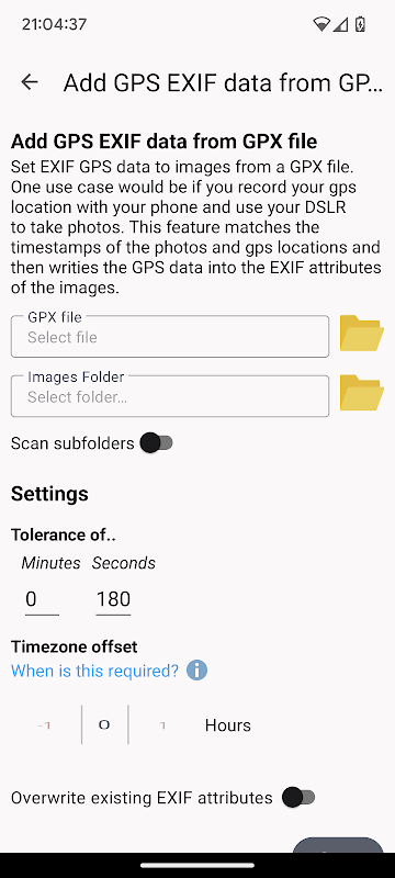 Jika kamera Anda tidak memiliki GPS, sinkronkan data GPS dari file GPX. Cocokkan cap waktu dengan lokasi dan tambahkan data GPS ke gambar Anda.