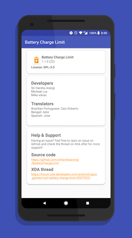 Aplikasi ini adalah sumber terbuka, dengan kod sumber yang terdapat pada Github: https://github.com/sriharshaarangi/BatteryChargeLimit