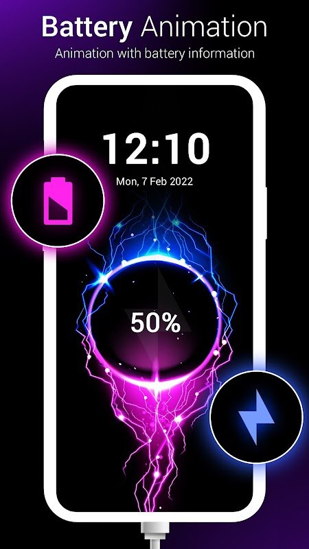With battery charging animation full screen set customizable charging animation for charging lock screen. You may obtain extensive battery information on the lock screen when charging your phone by using mobile charging animation HD themes. Battery charging animation is also used as a tool for animated battery charging on an always-on display.