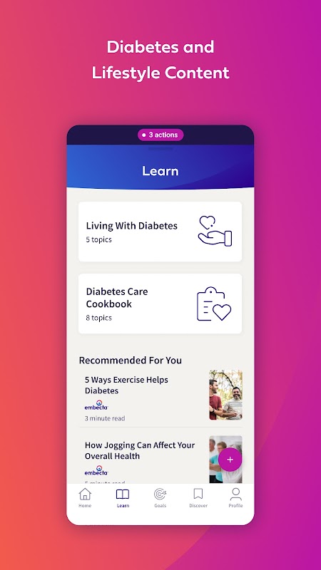 • Kandungan pendidikan membantu anda kekal termaklum dengan maklumat yang tepat dan terkini tentang pengurusan diabetes, termasuk petua, artikel dan nasihat pakar