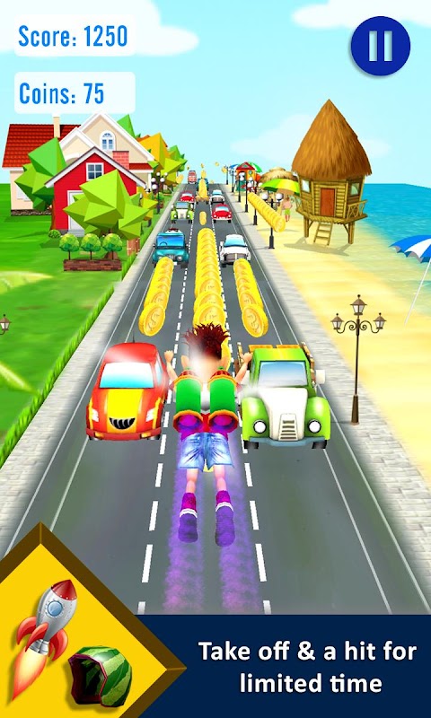 Beach Run - Keep running on the beach side by escaping from the hurdles and save your life. While you run keep on collecting coins and buy life saving helmets and funny jetpack to travel. One of the easiest running game you can play on your mobile for free.