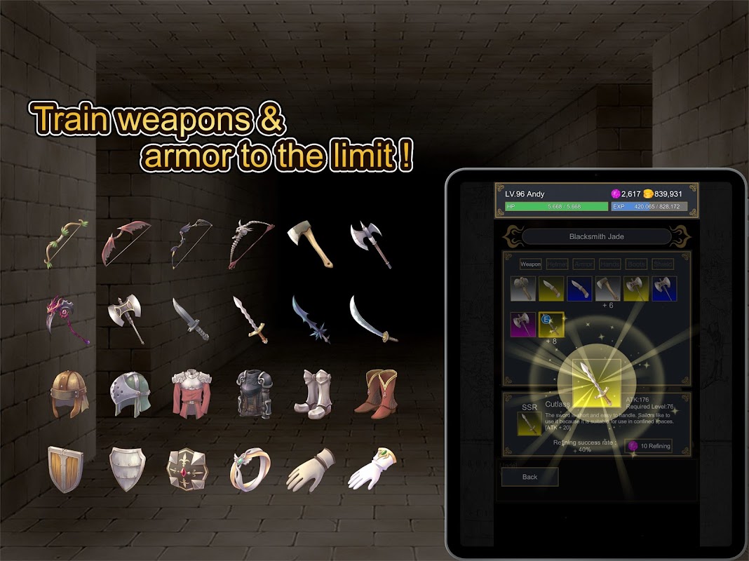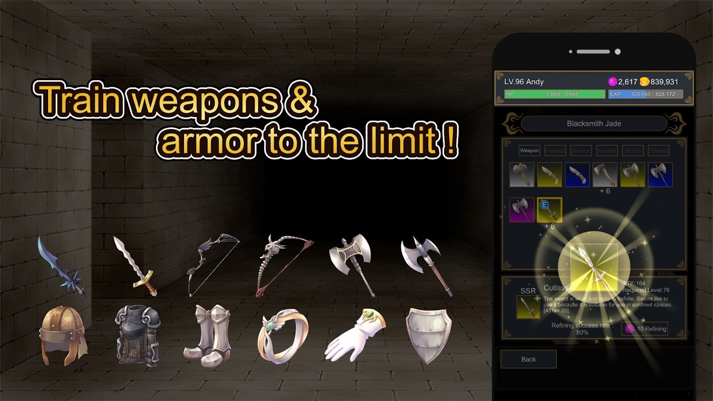 Nikmati mengalahkan raksasa, memperkuat senjata dan baju besi, dan mengembangkan watak anda dengan bebas!