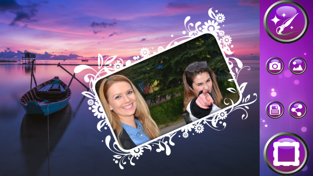 Masuk ke dalam studio foto maya baru anda dan melepaskan artis dalaman anda! Muat turun "Cantik Bingkai Foto" dan menghiasi gambar anda dengan cara yang anda sentiasa mahu. Tambah penapis foto yang hebat dan kesan dan dalam hanya satu saat foto membosankan anda boleh menjadi seni dan cantik. Bingkai gambar reka bentuk dari koleksi hebat ini diilhamkan oleh motif yang indah dan bunga tema yang boleh menghiasi gambar anda serta-merta. Sekarang anda adalah memastikan bahawa semua gambar-gambar anda kelihatan moden dan cantik dengan perisian penyuntingan foto percuma.