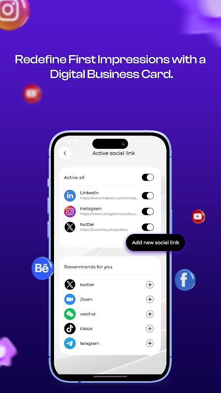 Buat sambungan serta-merta dan tinggalkan kesan yang berkekalan dengan BeinMy Network , aplikasi semua-dalam-satu untuk mencipta, berkongsi dan mengurus kad perniagaan digital. Buang kertas dan pergi digital untuk mempamerkan jenama anda dengan gaya dan kemudahan!