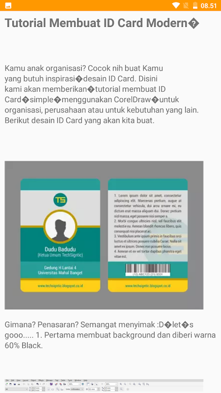 Aplikasi ini merupakan kumpulan tutorial menggunakan corel draw untuk menyelesaikan proyek atau tugas yang sering dibuat untuk keperluan sehari hari. Materi tutorial corel draw ini lengkap dan full offline jadi bisa dipergunakan sebagai buku saku panduan bagi pemula.