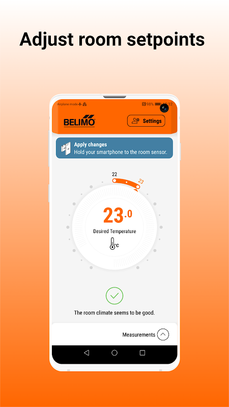 Apl Paparan Belimo ialah cara paling inovatif untuk mengakses penderia bilik dan unit pengendalian bilik daripada Belimo. Apl pengguna akhir yang intuitif membolehkan nilai bilik dipaparkan dan titik tetapan dilaraskan.