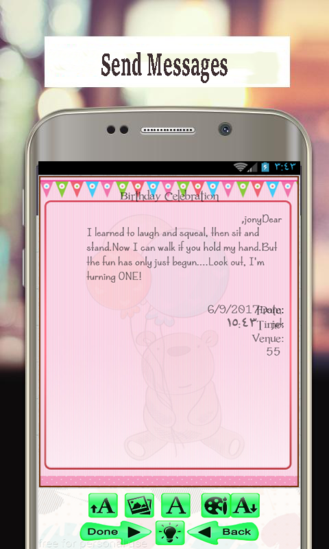 The app can work Invitation Cards Maker Free app allows you to Design Cards birthday girl & Kids Birthday Party Invitation Cards Maker and Designer Card generator to Invite Guests to all type of Birthday functions party in just 1-3 easy steps from our Free Card Templates collection. Designing is easy .