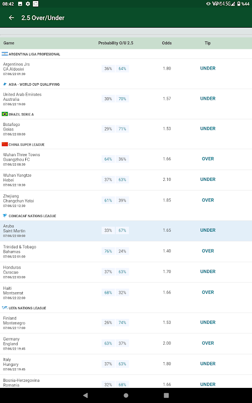 In our application, you can look at over under betting tips, 1x2 prediction, correct score football prediction, both teams to score sections as free betting tips.