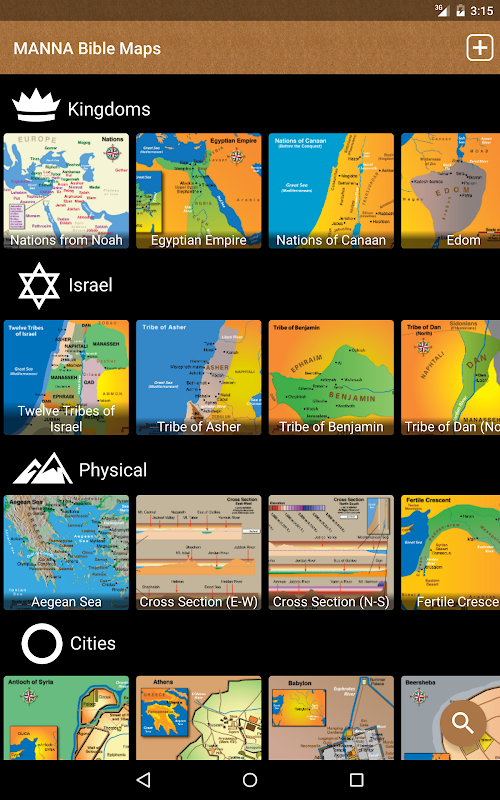 Jika anda pernah mahukan peta yang cantik untuk membantu menghidupkan bumi Bible, penantian anda telah berakhir. Peta Bible MANNA PLUS menghidupkan pembelajaran Bible dengan 86, peta berwarna penuh bagi tanah Bible serta 13 garis masa. Aplikasi ini juga mempunyai enjin carian yang berkuasa supaya anda boleh mencari lokasi bandar atau tapak. Aplikasi ini dilengkapi dengan maklumat terperinci tentang setiap peta dan semua bandar, tapak dan ciri pada peta dan garis masa. Perlukan peta untuk pembentangan atau kelas yang anda ajar? Peta peleraian tinggi ini sesuai dengan bil. Masukkannya dalam pembentangan atau cetak dalam warna resolusi tinggi. Apl percuma disertakan dengan 12 peta dan 2 garis masa supaya anda boleh melihat sendiri perkara yang ditawarkan oleh apl itu sebelum anda membeli. Anda boleh membeli perpustakaan individu peta - Kerajaan, Israel, Bandar, Garis Masa, Baitulmaqdis, Fizikal - dengan harga 99 sen setiap satu atau semua perpustakaan sekali gus dengan harga $8.99 (A.S.). Lebih banyak peta boleh didapati di laman web kami - www.biblemaps.com