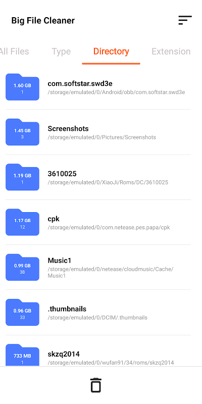 Big File Cleaner is an android app help you cleaning unnecessary big size files.