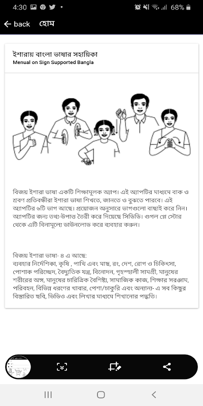 এই অ্যাপটির মাধ্যমে বাক ও শ্রবণ প্রতিবন্ধীরা ইশারা ভাষা শিখতে ও বুঝতে পারবে