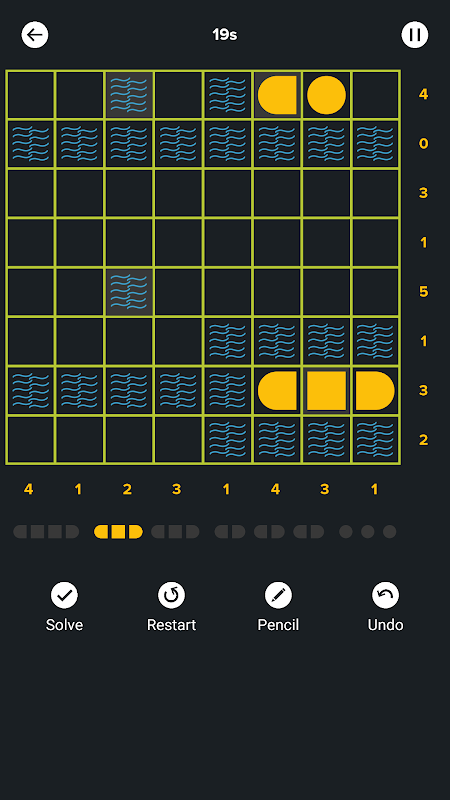 Bimaru Puzzle - Randomized will generate new puzzles every time you start a new game so you will never face the same puzzle twice (unless of course you have hit the inhuman limit!)