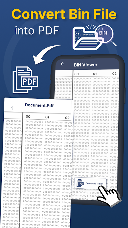 Pembuka Fail Bin – Apl pemapar fail bin boleh membantu anda membaca fail bin dan mengakses fail binari pada peranti android anda dengan apl pembaca fail bin. Pembuka fail bin untuk android – apl pemapar fail bin, Cuba pembuka fail ini untuk semua format: aplikasi pembaca foto bin jika anda mempunyai banyak fail bin pada telefon anda dan anda mahu membukanya. Pemapar fail bin untuk android ialah alat terbaik untuk melihat dan membuka fail binari. Pembuka Fail Bin – pemapar fail bin adalah antara muka mesra pengguna menjadikannya sangat mudah untuk membuka dan melihat fail binari. Adakah anda ingin menukar foto anda kepada format atau kod binari? Cuba gunakan video pembuka fail bin ini. Sebab utama untuk mencipta pemapar terbuka fail ini untuk android adalah untuk menukar mana-mana foto atau dokumen menjadi pengekstrak fail bin. Fail tersebut juga boleh dibuka dalam aplikasi. Mana-mana imej boleh ditukar kepada kod binari dan disimpan sebagai PDF.