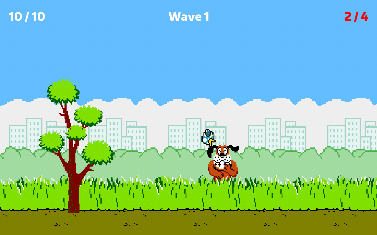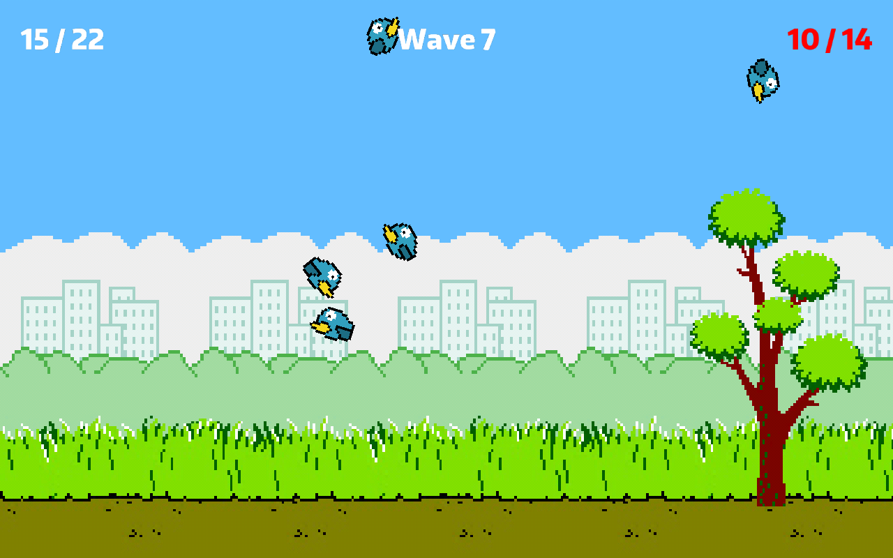 When the dog track down and chased the birds out of the bushes, the hunt has began. To shoot down the bird must touch it on the screen of your device. To pass to the next round must shoot the right amount of birds. The amount and rate of birds is dependent on the round in which you are. The game ends when you fail to shoot down the required amount.