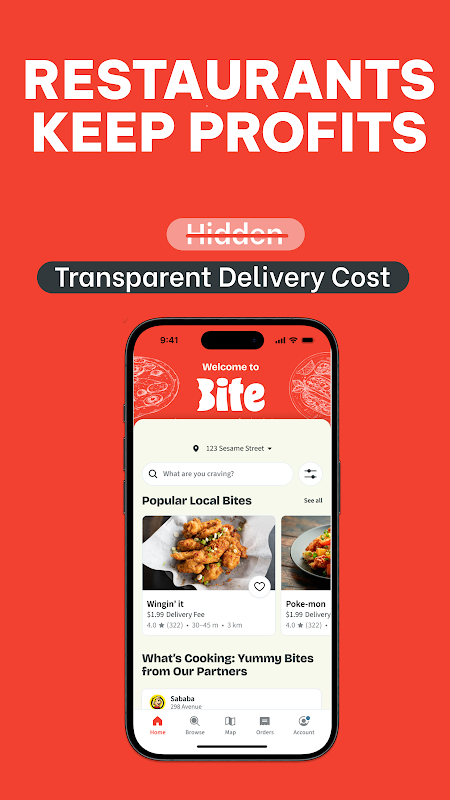 Bite mengenakan caj restoran tanpa bayaran komisen! Ini bermakna tiada lagi inflasi dalam apl! Kami menyokong restoran tempatan & berharap dapat memberikan ketelusan dan etika ke dalam industri. Kami membenarkan restoran menyimpan semua keuntungan mereka dan anda menjimatkan wang.