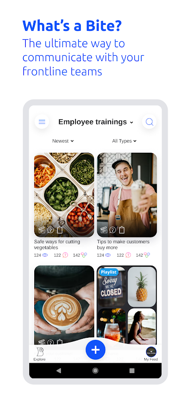 Bites adalah penyelesaian inovatif untuk perkapalan, latihan dan perkongsian pengetahuan profesional pekerja tanpa meja dan barisan hadapan.
