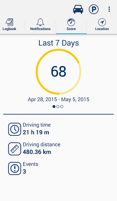 View your vehicle's trips, Out of Areas notifications and driving score.