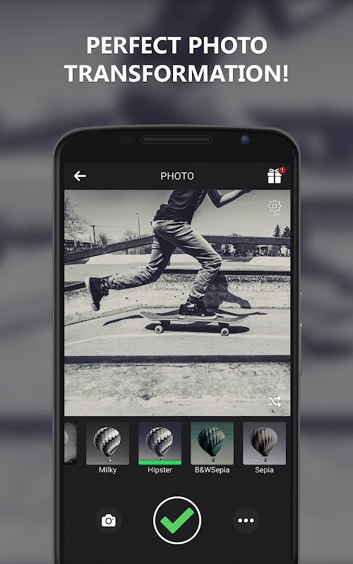 Efek foto dan filter kamera yang dimiliki aplikasi ini akan membawa foto-foto indah Anda ke level yang berbeda! Jika Anda pikir hanya ada satu cara untuk membuat foto hitam putih - pikirkan lagi! Download aplikasi ini dan bersenang-senanglah! Jika Anda ingin mengedit beberapa foto yang telah diambil sebelumnya, gunakan efek-efek foto ini. Tambahkan tampilan vintage dan tambahan cahaya atau pilih bagian yang tetap ingin Anda warna. Jika Anda berencana untuk mengambil foto sekarang, temukan filter foto favorit dan aplikasikan filter itu sebelum Anda mengambil foto. Dalam hitungan detik Anda akan mendapatkan foto yang mengagumkan yang akan Anda dan teman Anda sukai!