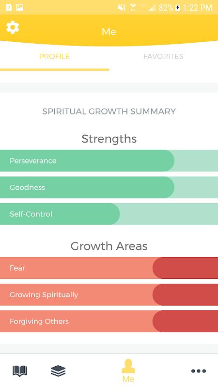 • Use the Me tab to get an overview of your spiritual life and areas of growth.