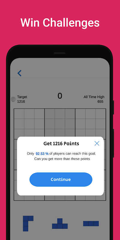 👉 Seret blok kiub pada grid 9x9 untuk membina garisan dan petak.