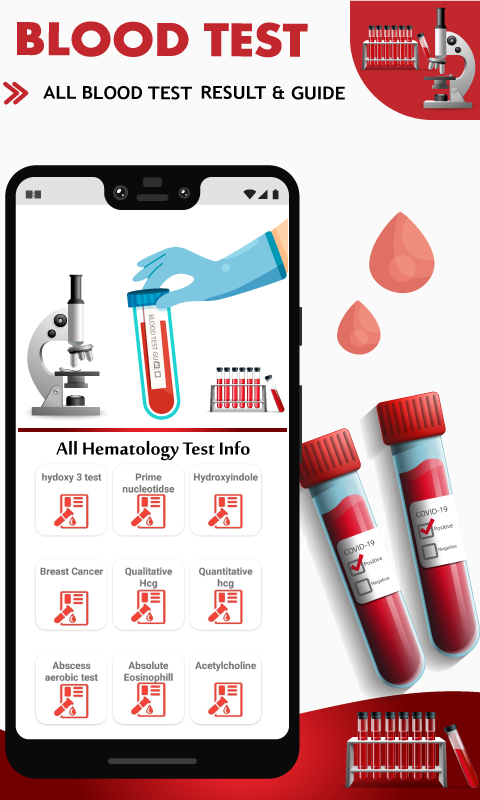 Garis Panduan Keputusan Ujian Darah memberi panduan lengkap kepada keputusan ujian darah membantu mentafsir atau memahami keputusan ujian darah. Garis Panduan Keputusan Ujian Darah dengan bantuan aplikasi ini pengguna boleh mengetahui rujukan julat ujian darah dan banyak lagi perkara yang menguji anda boleh memahami Laporan Ujian Darah mereka dengan cara yang lebih mudah. Julat rujukan untuk ujian darah ialah set nilai yang digunakan oleh profesional kesihatan untuk mentafsir set keputusan ujian perubatan daripada sampel darah. Dalam Aplikasi Panduan Ujian Darah ini, ia menyediakan semua jenis maklumat tentang setiap elemen dengan Julat mereka untuk Normal serta orang Klinikal dan butiran lanjut tentang Punca peningkatan/penurunan dan banyak lagi.