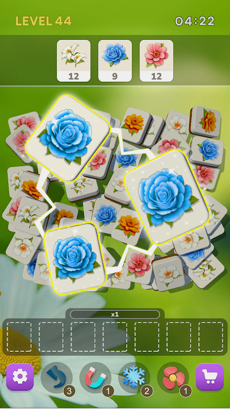 - Find 3 flower tiles and match them to disappear