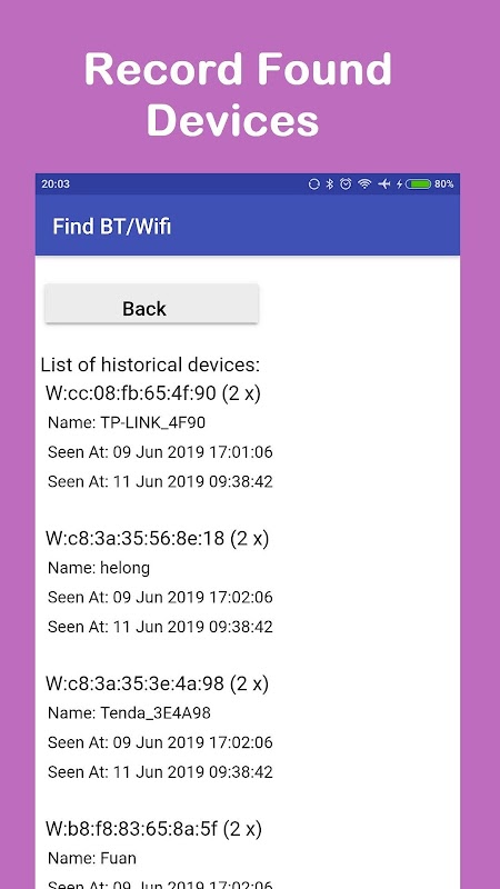 Penjelasan: RSSI lebih tinggi bermakna lebih dekat kepada anda, mis. peranti dengan RSSI -60 lebih dekat kepada anda daripada peranti dengan RSSI -78.