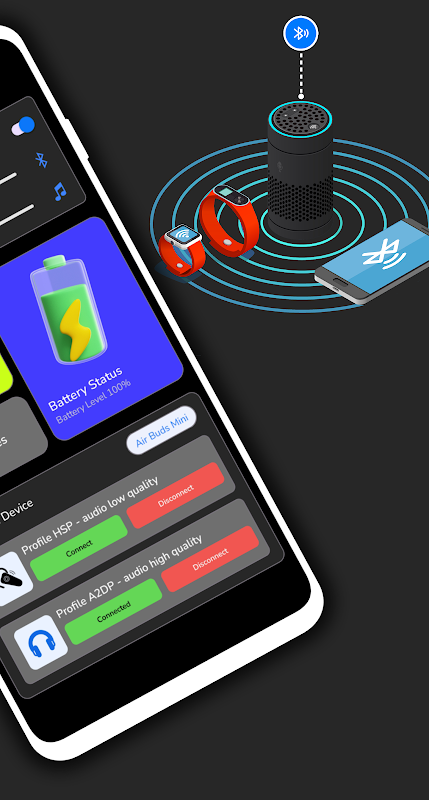 Muat turun dan kawal peranti Bluetooth anda terus dari skrin utama telefon anda.