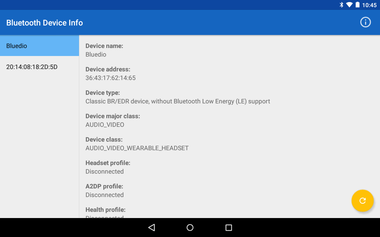 App menunjukkan maklumat mengenai peranti Bluetooth anda (nama, alamat, jenis, dan lain-lain).